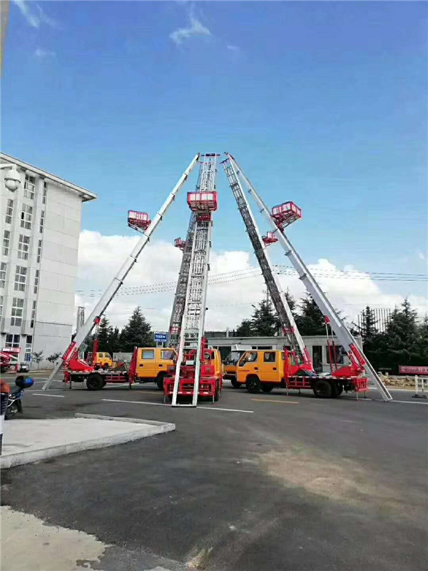 1、云梯搬運車到現(xiàn)場40秒工作狀態(tài),5分鐘全部展開,非??爝_到設(shè)計高度。