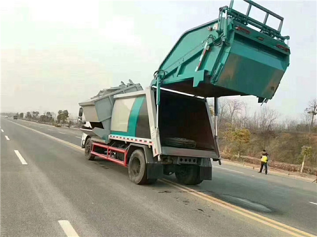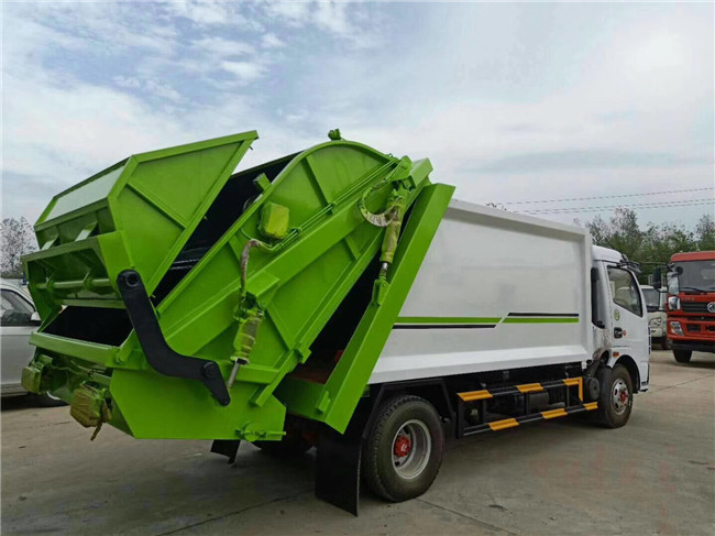 壓縮垃圾車的操作原理大致分為4個階段:第一階段:刮板向上擺動,做好插入松散垃圾內(nèi)的準備。第二階段:滑板帶動刮板向下移動,插入收集箱中的松散垃圾。第三階段:刮板向下作圓弧擺動,刮動垃圾使其開始進入主廂中。第四階段:滑板帶動刮板向上移動,將垃圾填裝到主廂中去,這樣就完成一次填裝循環(huán)。