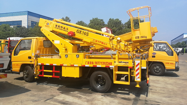 江鈴16米伸縮臂高空作業(yè)車(chē)整車(chē)說(shuō)明: 江鈴16米高空作業(yè)車(chē)配置參數(shù):江鈴順達(dá)新款雙排駕駛室,軸距3360mm,配備五十鈴115馬力正宗國(guó)五發(fā)動(dòng)機(jī),5檔變速箱,江齒五檔變速箱,7.00R16原廠鋼絲胎四節(jié)六邊形伸縮臂,最大作業(yè)幅度9.1m;最大作業(yè)高度:16m;最大作業(yè)高度時(shí)的作業(yè)幅度4.4m,360°全回轉(zhuǎn)。前V后H型支腿,支腿橫向跨距(mm)3605,3670;縱向跨距(mm)3640,3810;吊藍(lán)額定載荷≤200㎏。吊藍(lán)尺寸:11006501150,靜液調(diào)平,帶油缸鎖止功能,車(chē)架和吊藍(lán)雙位操作。帶應(yīng)急動(dòng)力單元!