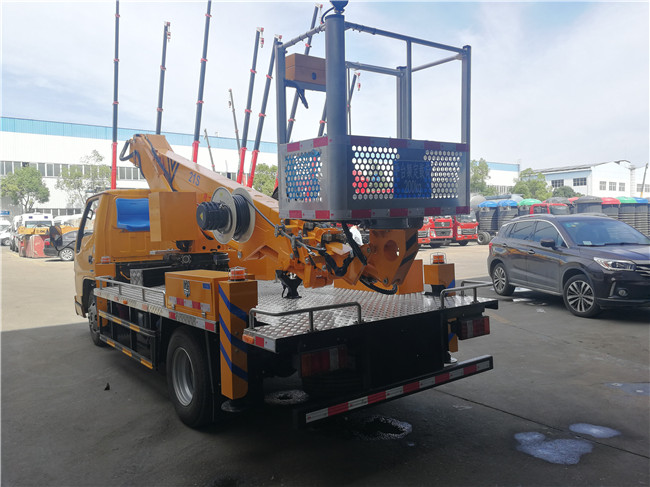 四支腿的水平及垂直伸縮均可單獨控制,適應性強;上臂仰角限制裝置防止危險工況發生;上下車互鎖及軟腿保護功能保障作業安全;水平腿未伸時限制工作臂回轉但不限起落,既保證安全又提高效率;設有應急泵;裝有電子計時器,可累計作業時間以便及時維護保養。
