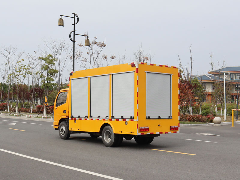 選裝配置:選裝行李架、爬梯、車頂工作臺;選裝不同形狀、結構的警示燈;選裝中隔斷(可選擇開門)、車身兩側可選開上掀門、盲窗、側開門;花紋鋁板;加裝設備工具柜、配電箱、發電機組、水泵、電焊機、空壓機等線路安裝外接電源系統、(室內燈光照明、探照燈、高桿照明燈等);繞線盤,還可根據用戶不同需求加裝不同的維修搶險設備、車身制作專用圖案或標識。