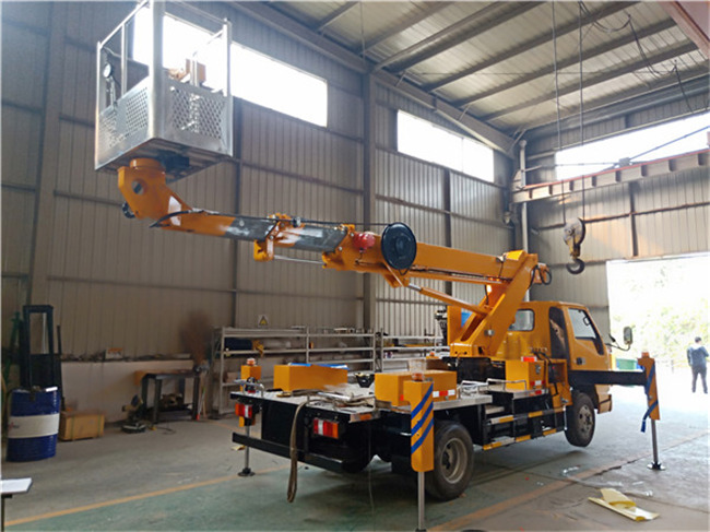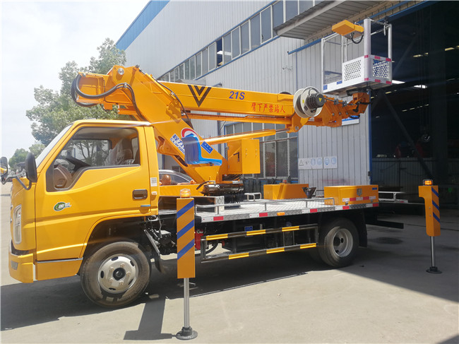 上裝配置:液壓360度全回轉(zhuǎn),三節(jié)折疊臂,單液壓舉升缸,帶雙向平衡閥,電控操作舉升臂,1噸可伸縮式吊鉤,四支液壓油缸可調(diào)式支腿帶雙向液壓鎖(支腿操作為手動操作,可單獨控制)。左右警示燈,黃色車身,全車貼反光標識,雙人穩(wěn)定作業(yè)斗,帶后防護,倆側(cè)防護,配一個移動工具箱。