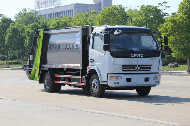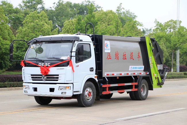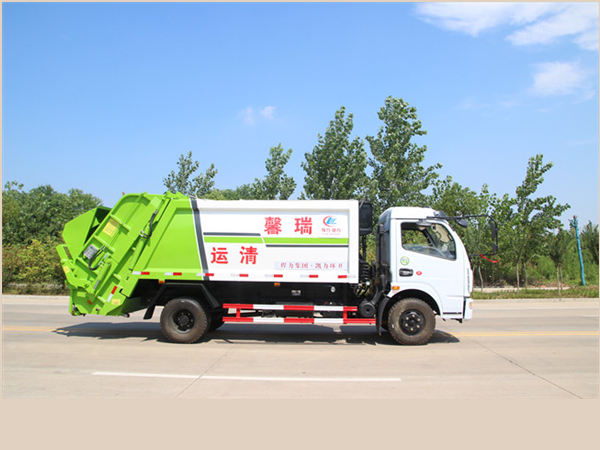 壓縮式垃圾車采用機電液一體化技術,采用機、電、液聯合自動控制系統,通過車廂、填裝器、推鏟等專用裝置,實現垃圾裝入、壓碎或壓扁、強力裝填,最后將生活垃圾壓實擠入車廂,運到目的地進行自動推動卸載。生活垃圾收集方式簡便、高效、具有反復壓縮及蠕動壓縮等功能,壓縮比高,裝載質量大,作業自動化,動力性、環保性好,整車利用效率高,壓縮垃圾車整車為全密封型,自行壓縮、自行傾倒、壓縮過程中的污水全部進入污水廂,較為徹底的解決了壓縮車運輸過程中的二次污染的問題。