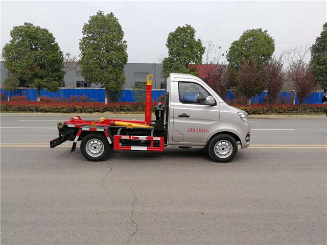 長安3方勾臂垃圾車廣泛適用與城市街道學校垃圾處理,可一車配備多個斗,各個垃圾點放置多個垃圾斗,帶自卸功能,液壓操作,方便傾倒。