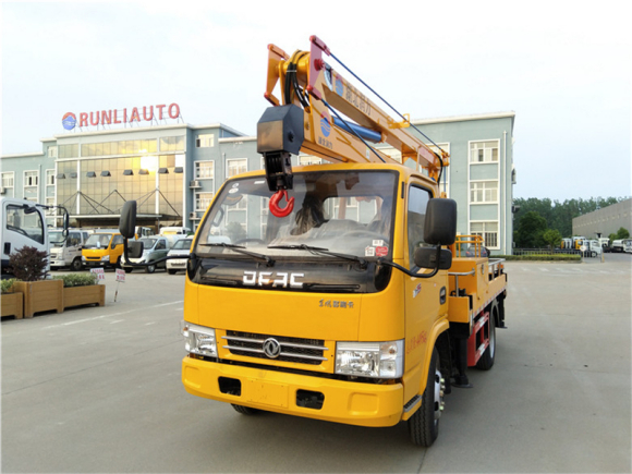 3、 吊臂:東風13.5米高空車吊臂最大起重質量1000kg,最大起吊高度7.4米,最大起吊幅度5.8米,鋼絲繩長度40米Φ8;起升機構IQKN1B6Y;單繩拉力800 Kg,吊鉤1T;