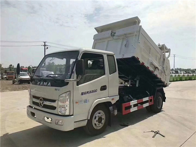 凱馬3300軸距排半藍牌壓縮對接帶翼展垃圾車;整車型號:HCQ5046ZDJKM5。