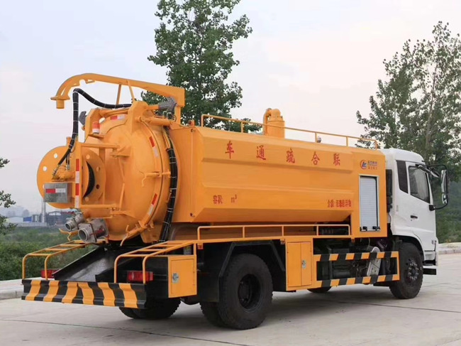 上裝:罐體采用6mm優(yōu)質(zhì)碳鋼板,高壓泵采用天津雙耀215流量高壓泵,水循環(huán)泵采用SK -2BE204水循環(huán)泵,視污窗,帶大后開蓋,罐體帶舉升功能后蓋可液壓開啟,罐體內(nèi)部兩道防浪板,罐頂360可旋轉(zhuǎn)吊桿 ,一條8米的吸污管,罐體尾部一個100的吸污球閥,一個150的排污閥,尾部帶剪頭燈,可自吸自排。