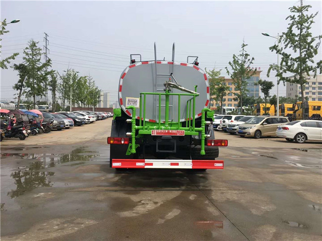 灑水車一車多用!采用大流量水泵,大通徑球閥、灑水功能前沖、后灑、側(cè)噴、工作平臺帶高炮(可調(diào)節(jié)成霧狀、直柱狀)、可泵進(jìn)泵出、罐體兩側(cè)圓形炮筒、帶兩根抽水軟管。灑水車基礎(chǔ)知識:灑水車水流量是多少?主要取決于車輛上裝載的灑水泵流量、以及噴水頭的數(shù)量、還有就是灑水車的發(fā)動機(jī)的油門。